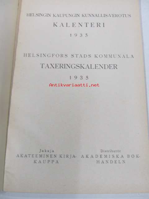 Helsingin kaupungin kunnallisverotuskalenteri - Helsingfors stads kommunala taxeringskalender 1935