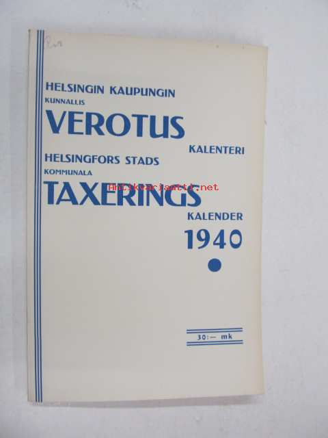 Helsingin kaupungin kunnallisverotuskalenteri - Helsingfors stads kommunala taxeringskalender 1940
