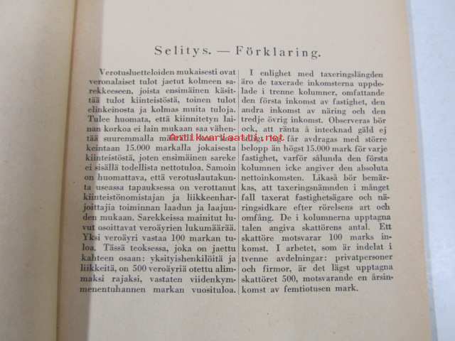 | Saatavilla | 1 kpl | | Julkaisuvuosi | 1940 | | Sivuja | 126 | | Painos | 1. | | Kunto | K3 | | Sidonta/painoasu | Nidottu (pehmeäk.) | | Kielet | Suomi, Ruotsi |