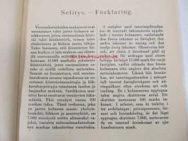 | Saatavilla | 1 kpl | | Julkaisuvuosi | 1955 | | Sivuja | 206 | | Painos | 1. | | Kunto | K3 | | Sidonta/painoasu | Nidottu (pehmeäk.) | | Kielet | Suomi, Ruotsi |