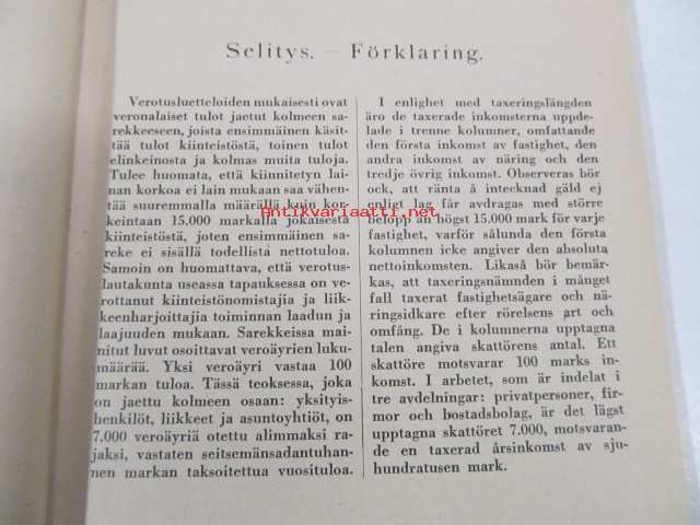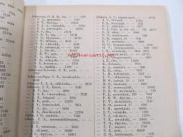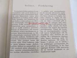 | Saatavilla | 2 kpl | | Julkaisuvuosi | 1957 | | Sivuja | 254 | | Painos | 1. | | Kunto | K3 | | Sidonta/painoasu | Nidottu (pehmeäk.) | | Kielet | Suomi, Ruotsi |