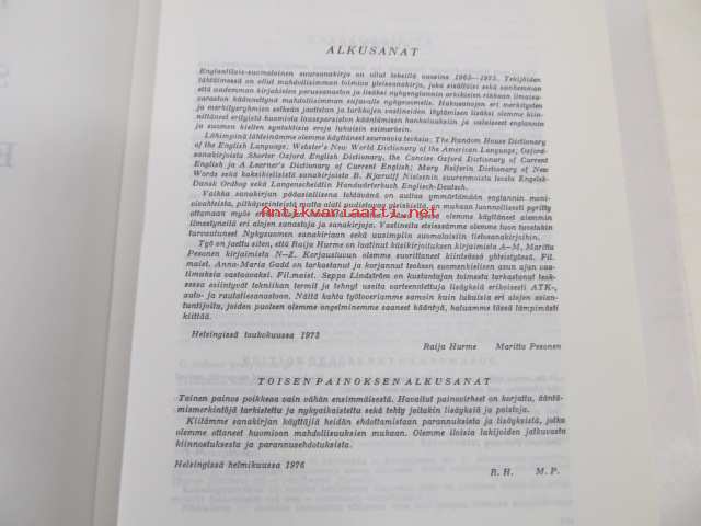 | Saatavilla | 1 kpl | | Julkaisuvuosi | 1983 | | Sivuja | 1182 | | Painos | 2. | | Kunto | K3 | | Sidonta/painoasu | Sidottu (kovak.) | | ISBN | 951-643-628-5 | | Kielet | Suomi, Englanti |