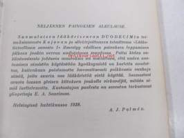 | Saatavilla | 1 kpl | | Julkaisuvuosi | 1950 | | Sivuja | 214 | | Painos | 7. | | Kunto | K3 | | Sidonta/painoasu | Sidottu (kovak.) | | Kielet | Suomi |