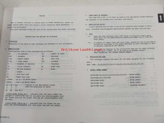 Suzuki GSX-R750M (GR7AA/B/C/) parts catalogue - varaosaluettelo