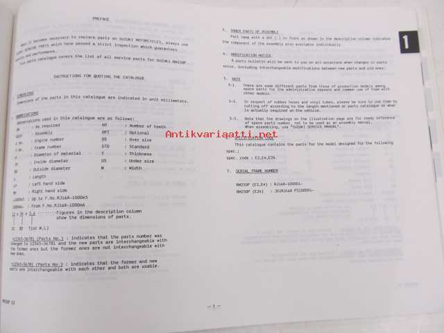 Suzuki RM250OP (RJ16A) parts catalogue - varaosaluettelo