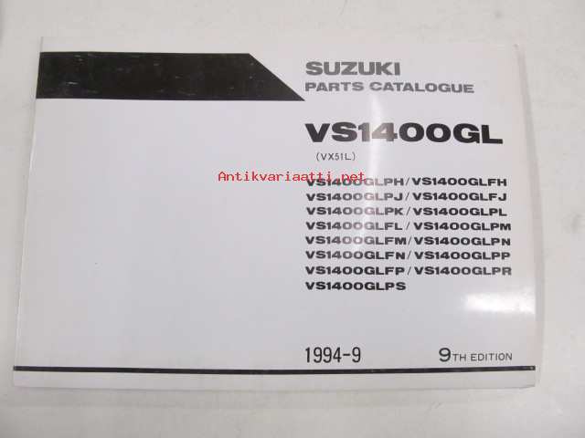 Suzuki Motor Corporation, 1994-9Suzuki VS1400GL (VX51L) VS1400GLPH/VS1400GLFH, VS14000GLPJ/VS1400GLFJ, VS1400GLPK/VS1400GLPL, VS1400GLFL/VS1400GLPM, VS1400GLFM/VS1400GLPN, VS1400GLFN/VS1400GLPP, VS1400GLFP/VS1400GLPR, VS1400GLPS parts catalogue - varaosaluettelo