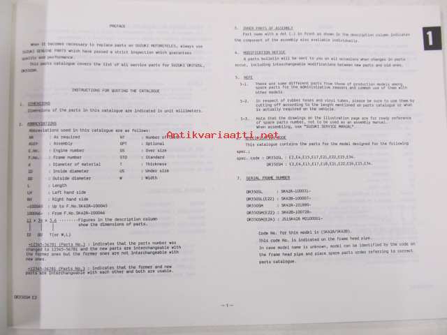 Suzuki DR350S (SK42A/SK42B) DR350SL, DR350SM parts catalogue - varaosaluettelo