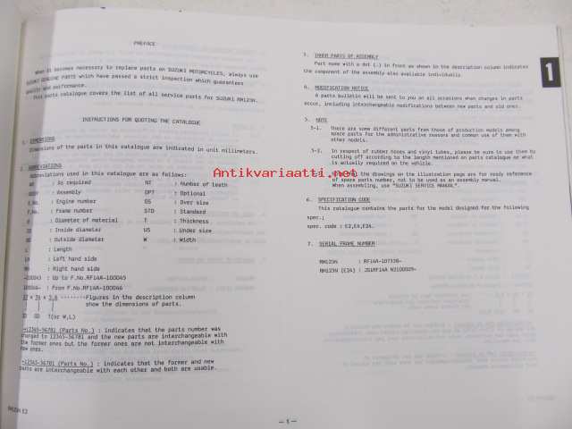 Suzuki RM125N (RF14A) parts catalogue - varaosaluettelo