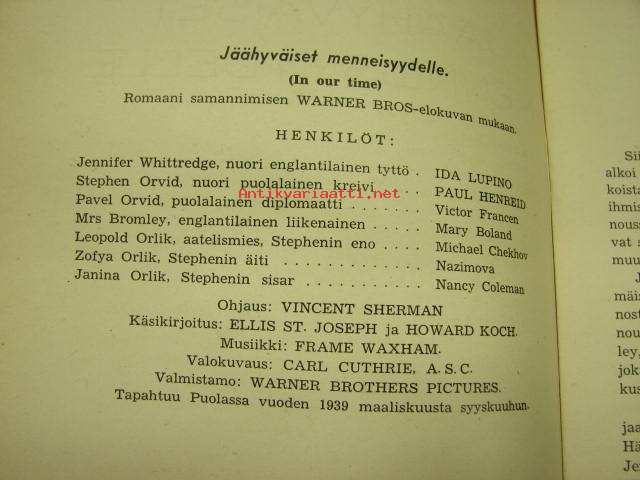 Jäähyväiset menneisyydelle - romaani samannimisen Warner Bros -elokuvan mukaan