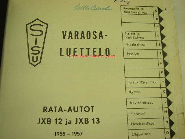 Sisu Rata-Autot JXB 12 ja JXB 13 1955-57 Varaosaluettelo