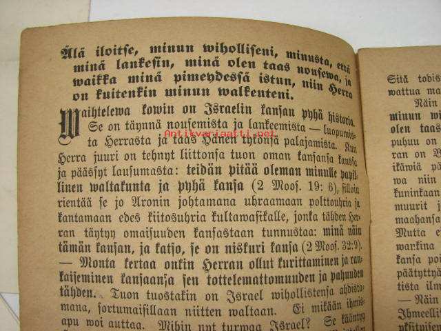 Älä iloitse, minun viholliseni, minusta, että minä lankesin, minä olen taas nouseva, ja waikka minöä pimeydessä istun, niin Herra on kuitenkin walkeuteni;