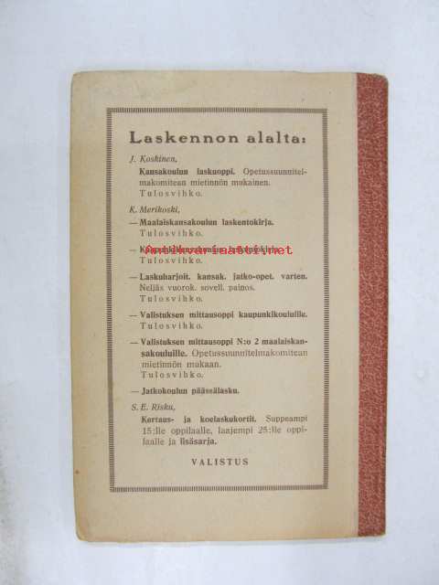 13 x 20 cm kirja. Perinteinen laskennon oppikirja.