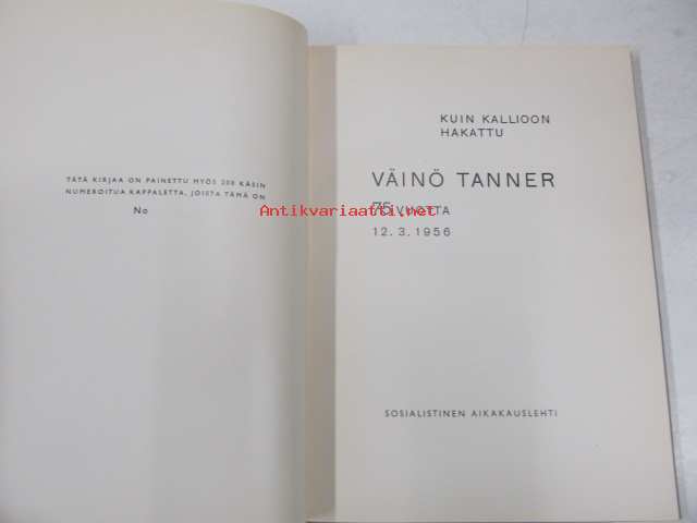 Kuin kallioon hakattu - Väinö Tanner 75 vuotta 12.3. 1956