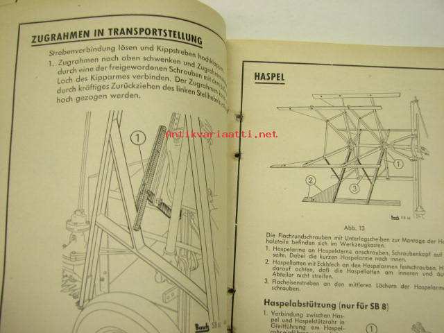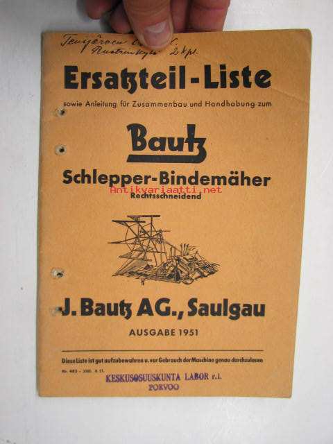 Bautz Schlepper-Bindemäher Rechtsschneidend Ersatzteil-Liste -varaosaluettelo