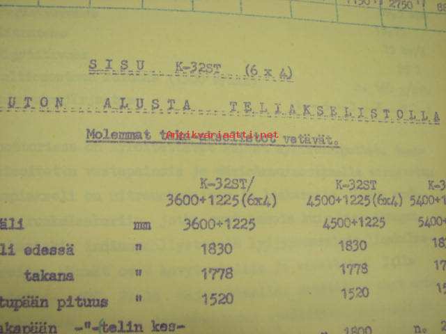 Sisu K-32ST (6x4) kuorma-auton alusta teliakselistolla - molemmat taka-akselit vetävät / tekniset tiedot -tehtaan alkuperäinen monistettu esite