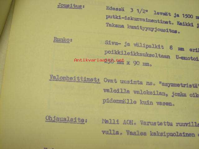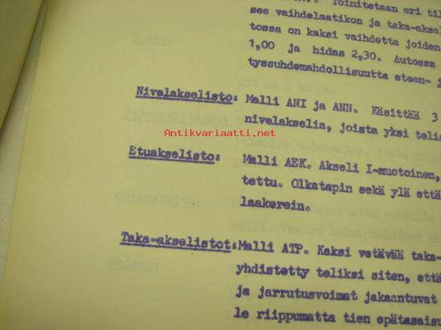 | Saatavilla | 1 kpl | | Sivuja | 5 | | Kunto | K3 | | Sidonta/painoasu | Muu | | Kielet | Suomi |