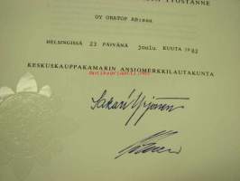 Keskuskauppakamari, 198221 x 30 cm myöntökirja.
