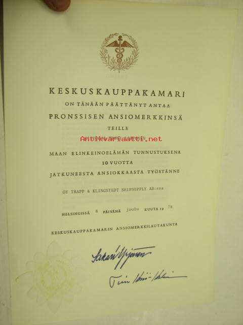 Keskuskauppakamari, 197821 x 30 cm myöntökirja.