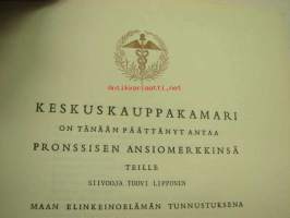 Keskuskauppakamari pronssinen ansiomerkki Tuovi Lipponen -myöntökirja