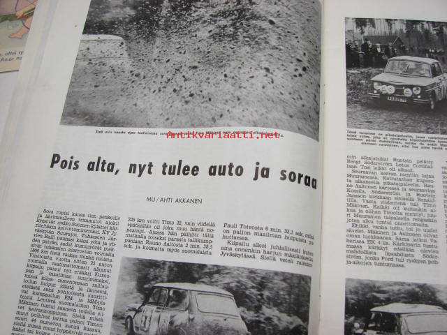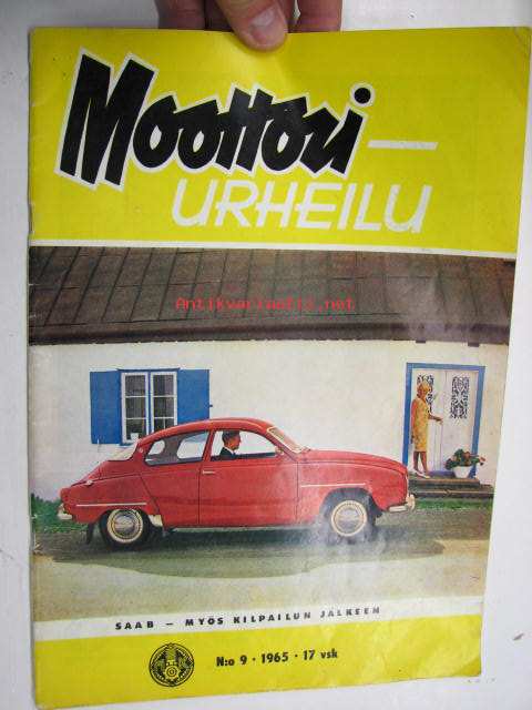 Moottoriurheilu 1965 nr 9, sis. mm. seuraavat artikkelit / kuvat, mainokset; Imatran ajot, Tietokoneesta Imatran tulokset, Tauno Nurmen 350 ccm V-8, XV Jyväskylän Suurajot, Näin toimii rallihuolto, Artukainen & Ahvenisto. Teuvo Länsivuori, Timo Laine, Pininfarina, Esko Koponen, Isuzu Bellett 1500 esittely ym.