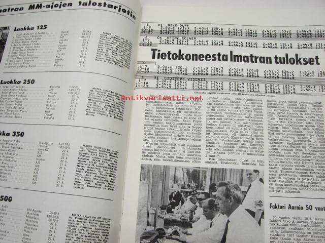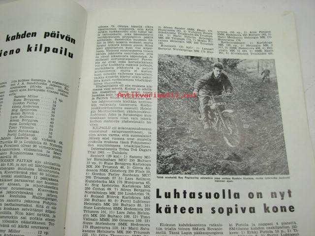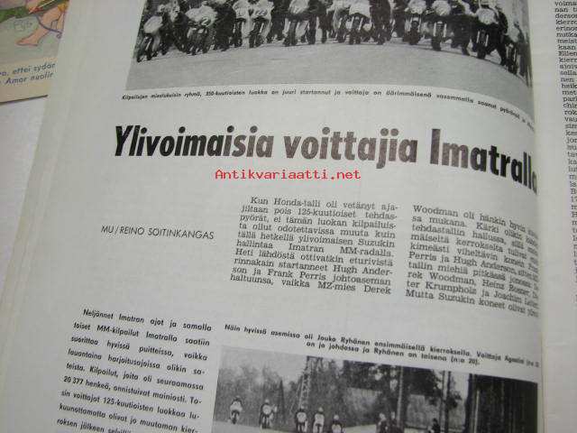Moottoriurheilu 1965 nr 9, sis. mm. seuraavat artikkelit / kuvat, mainokset; Imatran ajot, Tietokoneesta Imatran tulokset, Tauno Nurmen 350 ccm V-8, XV Jyväskylän