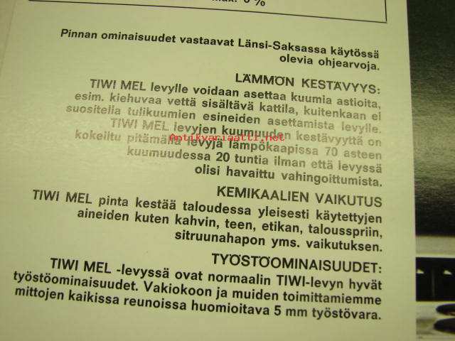 Tiwi MEL melamiinipintainen lastulevy -myyntiesite