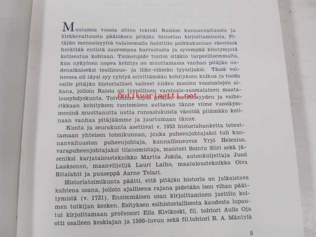 Kivikoski Ella, Oja Aulis, Mäntylä R.A., Raision historiatoimikunta, 1960