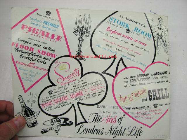 In London - For your entertainment and pleasure - 16.6.1966 ajalle tavanomaiseen tyyliin ravintolassa otettu kuva "bailaavista" suomalaisturisteista -valokuva