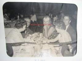 In London - For your entertainment and pleasure - 16.6.1966 ajalle tavanomaiseen tyyliin ravintolassa otettu kuva "bailaavista" suomalaisturisteista -valokuva kansiossa