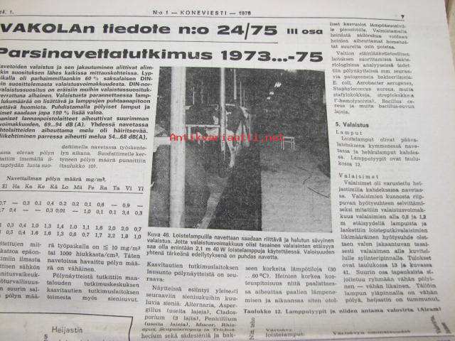 Viestilehdet Oy, 1976Koneviesti 1976 nr 1 -mm. Artikkelit, mainokset, kuvat; Raket 521 E, Hankmo, Vakola parsinavettatutkimus, Uudet Fiat-traktorit, Viljankuivurit 1976, Wartburg 353 W, Kivilän Konepaja, katso kuvista tarkempi sisältö.