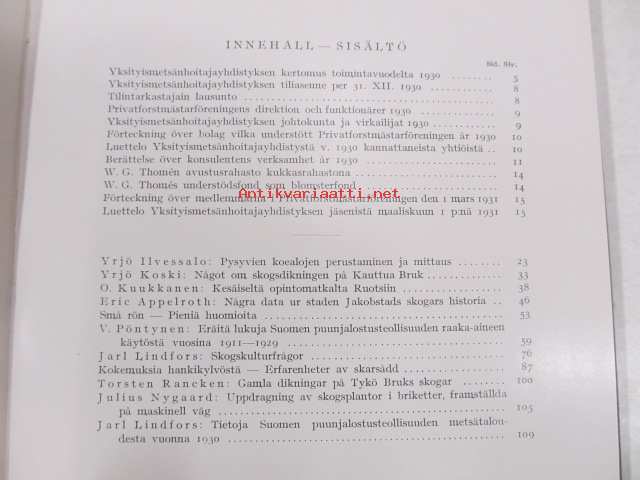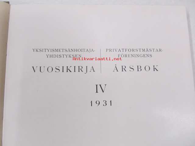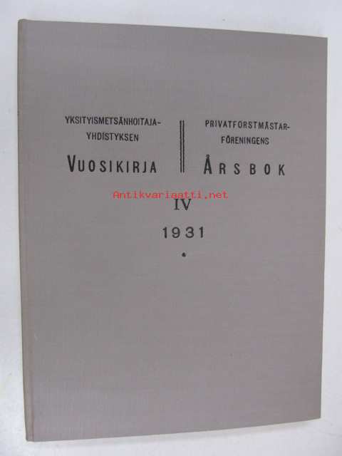 Yksityismetsänhoitajayhdistyksen vuosikirja - Privatforstmästarföreningens årsbok IV 1931