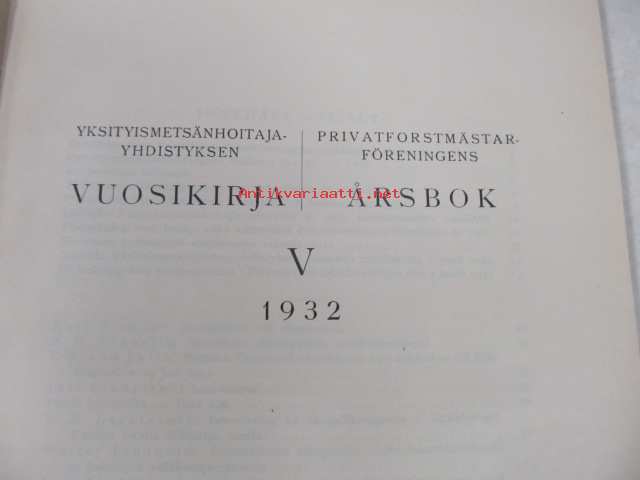 Yksityismetsänhoitajayhdistyksen vuosikirja - Privatforstmästarföreningens årsbok V 1932