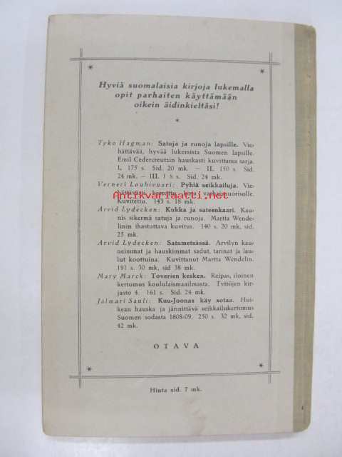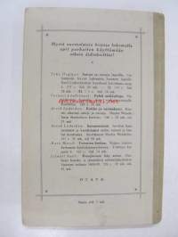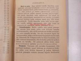 | Saatavilla | 1 kpl | | Julkaisuvuosi | 1934 | | Sivuja | 115 | | Painos | uusi laitos | | Kunto | K3 | | Sidonta/painoasu | Sidottu (kovak.) | | Kielet | Suomi |