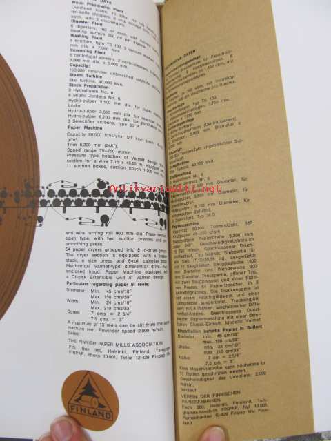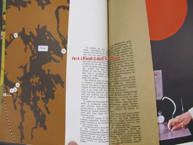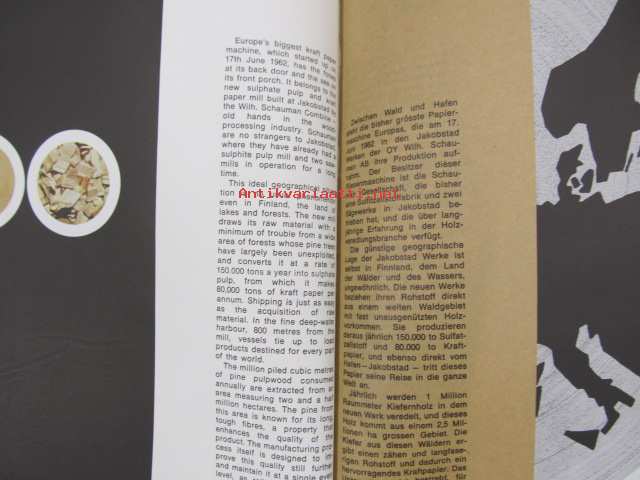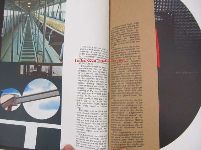 Schauman Kraft -Pietarsaaren kraftliner-paperikoneen esittelykirja englanniksi, saksaksi ja ranskaksi