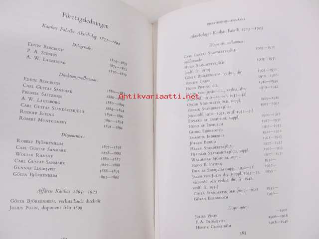 | Saatavilla | 5 kpl | | Julkaisuvuosi | 1973 | | Sivuja | 410 | | Painos | 1. | | Kunto | K3 | | Sidonta/painoasu | Nahkaselkä | | ISBN | 951-99018-6-8 | | Kielet | Ruotsi |