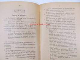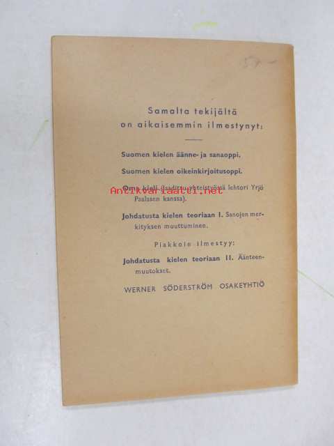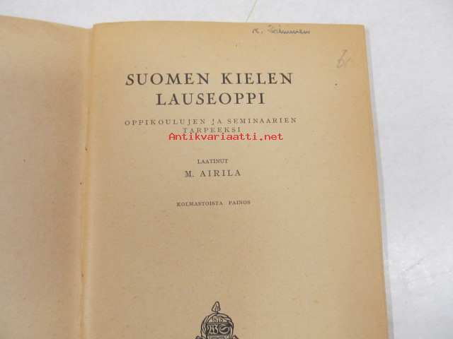 | Saatavilla | 1 kpl | | Julkaisuvuosi | 1945 | | Sivuja | 74 | | Painos | 13. | | Kunto | K3 | | Sidonta/painoasu | Nidottu (pehmeäk.) | | Kielet | Suomi |