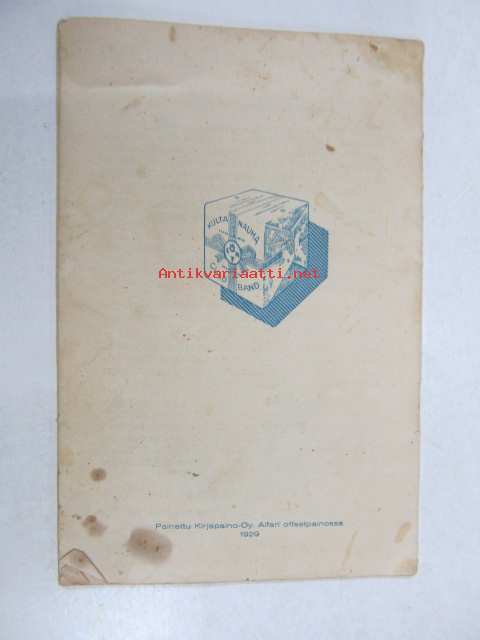 | Saatavilla | 1 kpl | | Julkaisuvuosi | 1929 | | Sivuja | 29 | | Kunto | K3 | | Sidonta/painoasu | Vihko | | Kielet | Suomi |