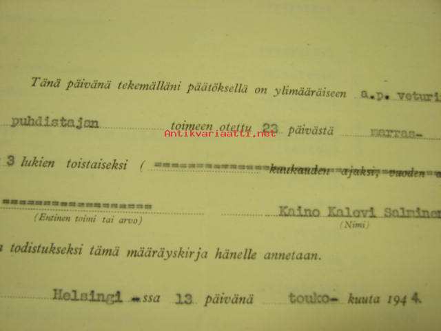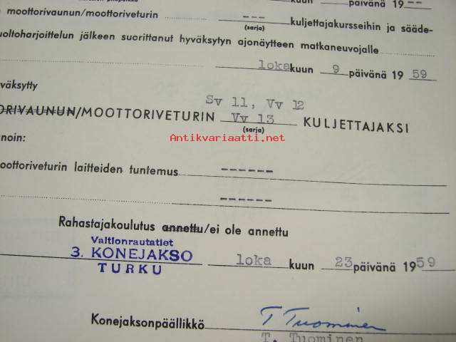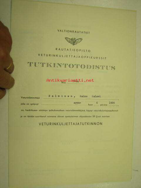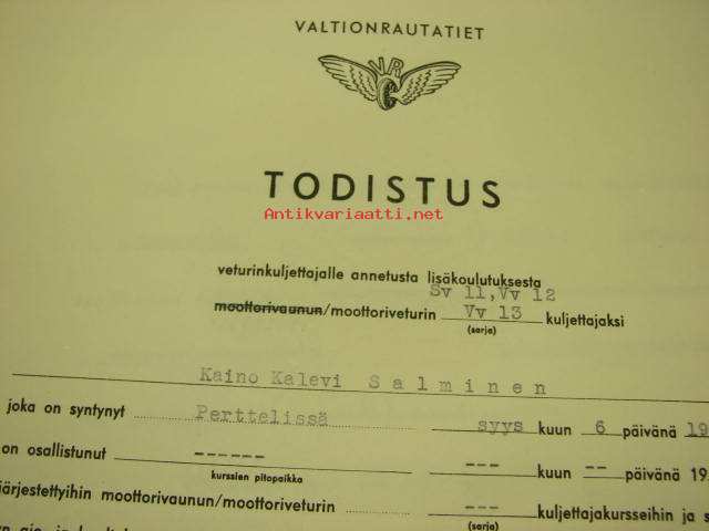 Valtionrautatiet, VR, Veturinkuljettajan tutkintotodistus nr 3644, Kaino Salminen