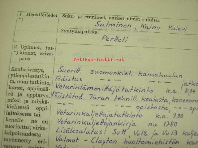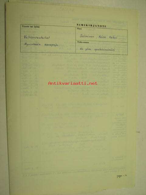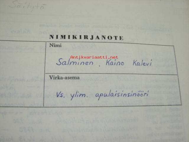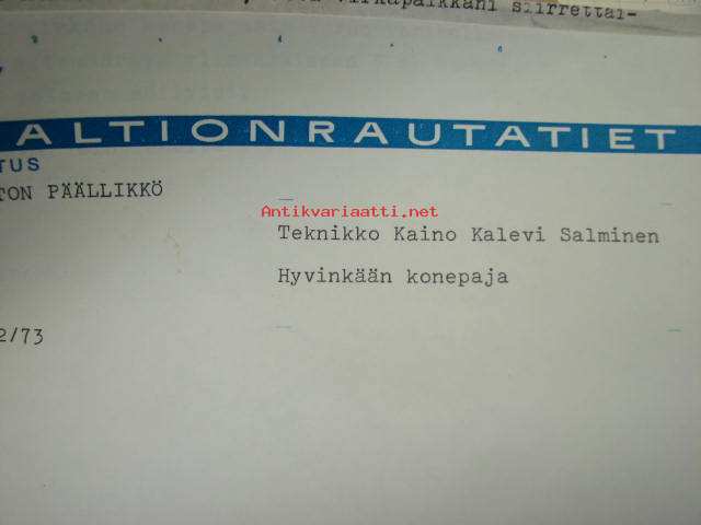 Valtionrautatiet, VR, vs. ylim. apulaisinsinööri Nimikirjanote ym. Kaino Salminen