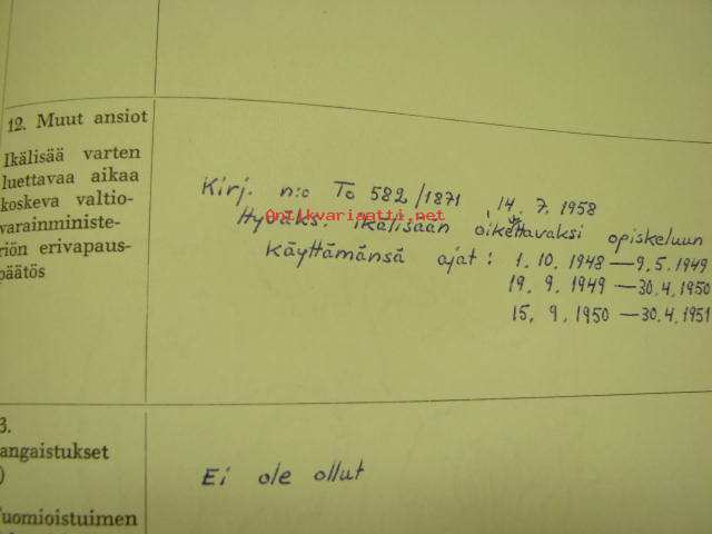 | Saatavilla | 1 kpl | | Julkaisuvuosi | 19 | | Kunto | K3 | | Sidonta/painoasu | Pienpainate | | Kielet | Suomi |