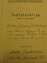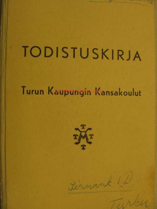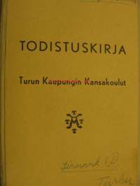 Todistuskirja Turun Kaupungin Kansakoulut