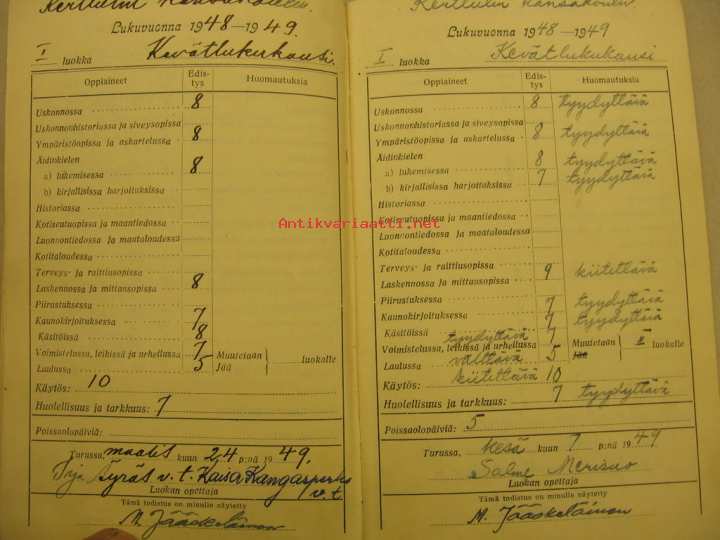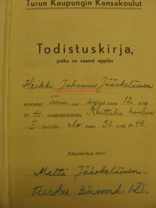 1947Tästä se on alkanut Heikki Johannes Jääskeläisen koulu-ura, numeroita ja todistuksiakin on saatu.