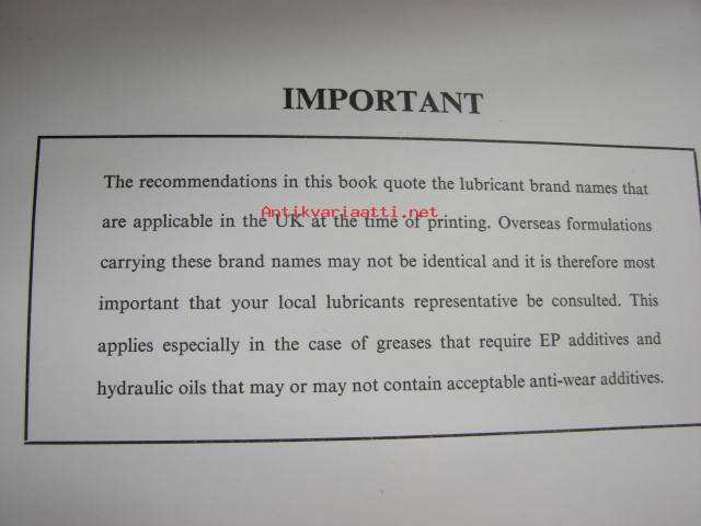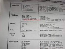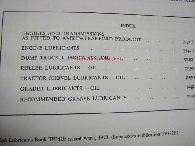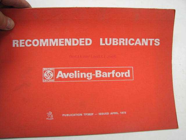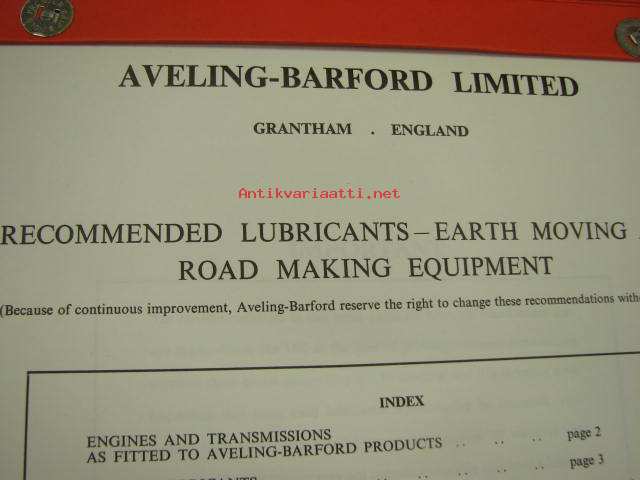 Aveling-Barford recommended lubricants - earth moving and road making equipment -suositellut voiteluaineet