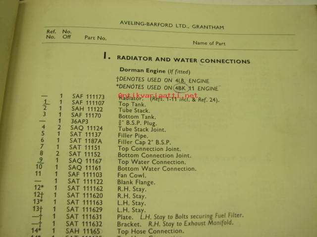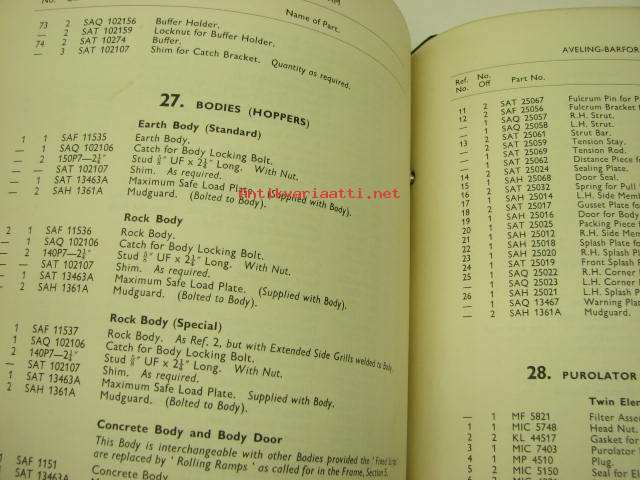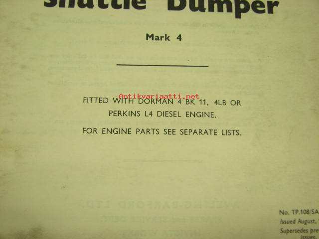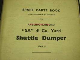 Aveling-Barford SA Shuttle Dumper Mark 4 spare parts book -varaosaluettelo