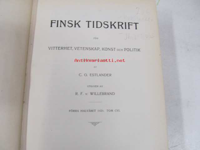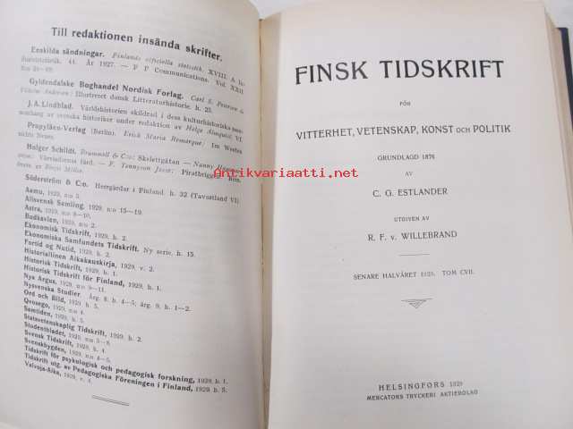 Finsk Tidskrift -sidottu vuosikerta 1929
