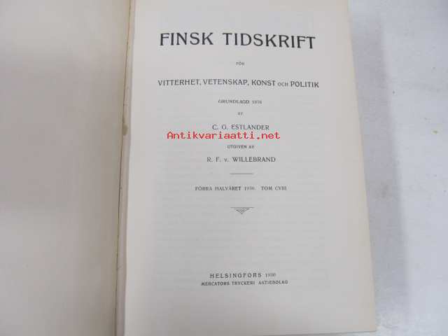 Finsk Tidskrift -sidottu vuosikerta 1930