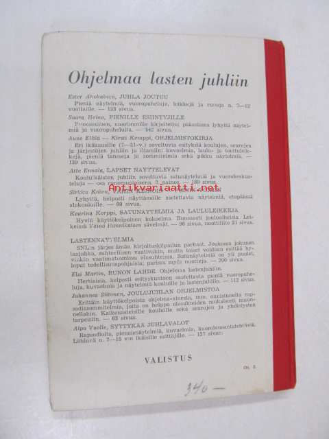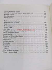 | Saatavilla | 1 kpl | | Julkaisuvuosi | 1954 | | Sivuja | 160 | | Painos | 1. | | Kunto | K2 | | Sidonta/painoasu | Kuvitettu kovakantinen | | Kielet | Suomi |