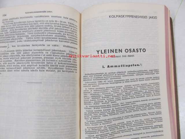 | Saatavilla | 1 kpl | | Julkaisuvuosi | 1946 | | Sivuja | 926 | | Painos | 6. | | Kunto | K3 | | Sidonta/painoasu | Sidottu (kovak.) | | Kielet | Suomi |