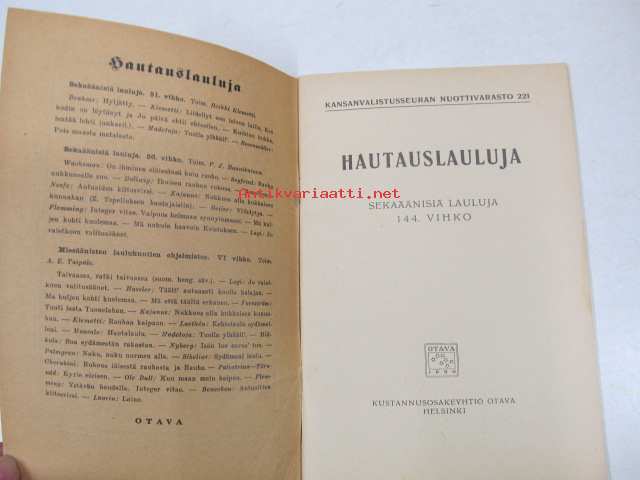 Hautauslauluja. Sekaäänisten laulujen 144. vihko