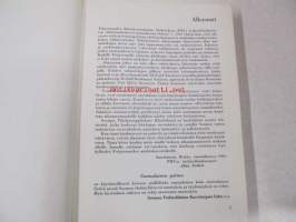 | Saatavilla | 1 kpl | | Julkaisuvuosi | 1962 | | Sivuja | 325 | | Painos | 1. | | Kunto | K3 | | Sidonta/painoasu | Sidottu (kansipaperit) | | Kielet | Suomi |